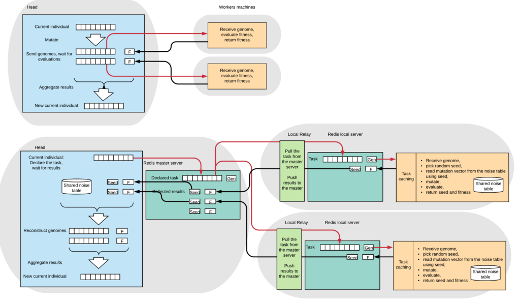 Currently, we are experimenting with an experimental setup proposed in our Badger paper. One of the areas of explorations is an evaluation of suitability of various training settings: supervised learning, Deep Reinforcement Learning (RL), and evolutionary optimization.